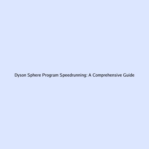 Dyson Sphere Program Speedrunning: A Comprehensive Guide