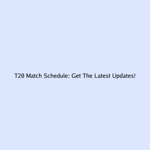T20 Match Schedule: Get The Latest Updates!