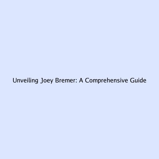 Unveiling Joey Bremer: A Comprehensive Guide